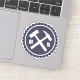 This "bottle cap" style badge features a geologist's favourite rock-bashing implements: a rock hammer and hand sledge! The perfect tools for beating rock samples into submission!