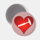A heart magnet with a geology twist: this red heart has a white rock hammer shape inside.