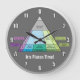 The colourful triangle on this grey wall clock is a QAP diagram, which is used to classify plutonic igneous rocks based on the modal percentage of Quartz, Alkali Feldspar, and Plagioclase! The Q, A, and P of the diagram replace the 12, 8, and 4 of the clock, respectively. The text below the diagram reads "It's Pluton Time!," but can be easily changed to whatever you want.