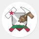 Geologist's Rock Hammer Shield- California Flag Classic Round Sticker