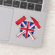 This vinyl decal features the classic geology rock hammer logo, decorated like the Union Flag of the United Kingdom. Put this sticker on your stuff!