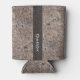 Delicate photo of rock texture covers the major part of this can cooler. There is a vertical semitransparent name banner. Banner is black, and text is light grey or light brown.