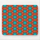 An attractive geometric pattern/design in shades of red, blue, green, yellow and purple with a kind of flower like motif.