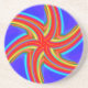 An attractive geometric pattern or design predominately in shades of red and blue, but also with yellow, cyan, purple and green.