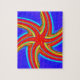 An attractive geometric pattern or design predominately in shades of red and blue, but also with yellow, cyan, purple and green.