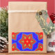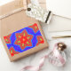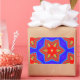 An attractive geometric pattern predominately in shades of red and blue, but also with yellow, cyan, purple and green.