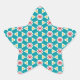An attractive geometric pattern with asterisk like shapes, hexagons and triangles in a nicely balanced pallet of red, white, amber, brown and aqua green. The design also has a subtle paper like texture giving it a nice traditional media effect.