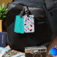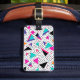 A geometric 80s style, this luggage tag features colourful triangles on a polka dot background. On the back is a place to insert your information using templates. Order yours today!