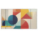 A bold and vibrant geometric abstract design inspired by the Bauhaus movement, featuring clean lines, intersecting shapes, and a harmonious balance of color. Deep blues, golden yellows, and warm reds combine to create a striking visual composition that celebrates simplicity and structure.