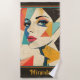 Beautiful abstract nearly Cubist style art of a beautiful woman's resting face. Her aqua eyes capture your attention! Personalised beach towel with dramatic art is a great gift for a vacation in the sun whether for yourself or a friend!