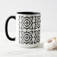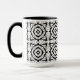 This geometric design features batik-type shapes and batik type patterns in black and white.
