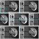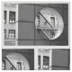 Stylish geometric fabric features a brick repeat of an architectural black and white photograph. The large open circle cut into the foreground concrete wall always stopped me. With just the right angle of view through the circular window, the zigzag of the fire escape stairs of the next building became visible. A collection of mesmerising geometry was contained within and surrounding the circle: lines, angles, squares, rectangles, and triangles.