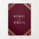 Geometric Art Deco Burgundy Gold QR Code Wedding Tri-Fold Invitation