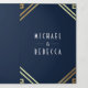 Geometric Art Deco Navy Blue Gold QR Code Wedding Tri-Fold Invitation