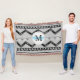 Geometric Aztec Black and Grey Monogram Pattern Throw Blanket
