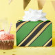 Geometric Black and Gold Stripes on Green Wrapping Paper