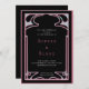 The invitation features a striking black background, which serves as the perfect backdrop for the intricate art deco design. The inner border is a beautiful shade of pink that adds a pop of colour and creates a stunning contrast against the black background. This is then surrounded by a black border and a thin pink border that completes the elegant design.