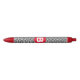 Geometric Black and White Pattern Red Monogram Black Ink Pen