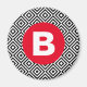 Abstract black and white geometric pattern with bright red monogrammed circle (optional)