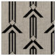 Stylish geometric fabric features three alternating black and transparent chevrons pointing up and ending at a diamond. Three black stripes extend from the top of the diamond to the base of the repeated design. The half drop design gives a feeling of arrows pointing upwards.