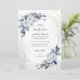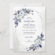 Embrace timeless elegance with our Geometric Blue Floral Wedding Invitation, a beautiful choice for couples seeking a sophisticated blue or navy-themed celebration. Perfectly suited for a winter wedding or any season with a touch of elegance, this invitation combines intricate floral patterns with modern geometric accents, creating a unique balance of classic and contemporary style. The deep blues and navy tones blend seamlessly, adding a sense of refinement and grace that speaks to both tradition and modernity.