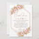 Sweet faux rose gold frame bohemian bridal shower tea party invitation featuring two natural tones, blush floral arrangements with pampas grass and a white teapot. The heading is a faux rose gold image that can be removed.