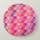 Round pillow with pink, purple, orange triangles pattern.