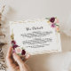 This geometric burgundy wedding details insert card is perfect for a rustic wedding. The design features elegant green, blush, purple, red and burgundy hand-drawn flower bouquets, adorning gold geometric frames, inspiring class and beauty.