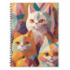 This colourful notebook features a unique geometric cute cats pattern that is sure to stand out. The design is made up of various shapes and colours, creating a fun and playful look. The notebook is perfect for taking notes, journalling, or doodling, and makes a great gift for any cat lover or art enthusiast.