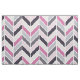 Geometric chevron pattern fabric in accents of purple, pink and grey.