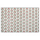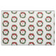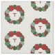Stylish holiday fabric features a festive geometric Christmas wreath with a customisable monogram in the centre. The wreath in this original digital design is made of green dots in three different shades and sizes. A strand of smaller red dots representing cranberries winds around the circular pattern. The wreath is topped with a red bow.