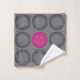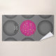 Stylish modern geometric 3-D illusion charcoal grey circles with a unique hot pink contrasting centre. This elegant minimalist Bath Towel Set will add a classy touch of flair to your neutral bathroom decor palette. Popular font monogram name and initial are easy to customise or delete.