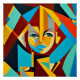 The AI created cubist interpretation from my description representing a geometric facial portrait of the ancient Egyptian Queen Cleopatra the seventh as she sadly contemplates her future.