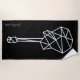 Cool graphic design of an electric guitar on a stylish black beach towel, personalised with the guitarist name