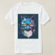 Bring futuristic vibes to your style with this stunning geometric cat design. Featuring a bold, polygonal structure with vibrant shades of blue, purple, and pink, this cyber cat's piercing yellow eyes give it an intense and modern look. The abstract, interconnected background adds a hint of digital artistry, making it perfect for tech enthusiasts and cat lovers alike.