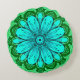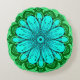 Geometric Daisy Pattern in Turquoise and Green Round Cushion