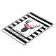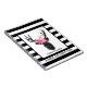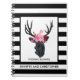 A spiral notebook wedding planner (or other purpose) personalised with your names and subject title.Wwith a black deer head made with geometric lines and wearing a pink floral crown. Rustic and trendy design. Background is a pattern with black and white stripes.