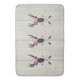 A bathmat with a black deer head made with geometric lines and wearing a pink floral crown with crossed arrows beneath. Rustic and trendy design.