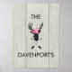 A poster personalised with your family name or other text with a black deer head made with geometric lines and wearing a pink floral crown. Rustic and trendy design.
