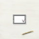 Sticky notes with a black deer head made with geometric line and wearing a pink floral crown. Rustic and trendy design. Background is a pattern with black and white stripes and a white frame layered over top.