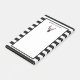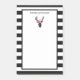 Large format sticky notes with a black deer head made with geometric line and wearing a pink floral crown. Rustic and trendy design. Background is a pattern with black and white stripes with a white frame layered over top. Personalise with a name.