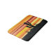 Abstract geometric desert sunset illustration with yellow, orange and red diagonal stripes and cactus decoration. Add your name/monogram or delete the text.