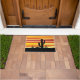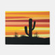 Abstract geometric desert sunset illustration with yellow, orange and red diagonal stripes and cactus decoration. Add your name/monogram or delete the text.