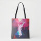 A cute angel tote bag with a silhouette of an angel playing the trumpet. All on a geometric pattern design.