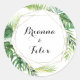 These geometric destination wedding envelope seals are perfect for a tropical wedding. The design features hand-painted watercolor green palm and banana leaves neatly arranged into beautiful bouquets, adorning a gold geometric frame.