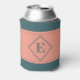 This can cooler design features a centred geometric double diamond shape in teal over a pale salmon background. Personalise the text field with an initial letter or click customise to select a typeface colour, size, and style your prefer.