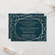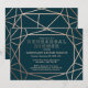 A modern and contemporary winter rehearsal dinner invitation, features a "faux foil" gold rose geometric pattern over a dark turquoise background. All your details are spelled in a beautiful modern typo.