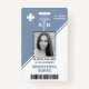 Geometric dusty blue triangles Registered nurse RN id badge. This modern geometric design features dusty blue and white diagonal triangles with your photo, logo, caduceus and barcode.