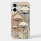 A modern, minimalistic depiction of mushrooms using geometric shapes and clean lines. The subtle pastel and neutral colour palette creates a sophisticated and contemporary aesthetic, blending nature with abstract design.