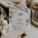 This geometric elegant gold green 50th birthday party invitation is perfect for a modern birthday party. The design features hand-painted botanical green eucalyptus leaves, adorning a gold geometric frame.